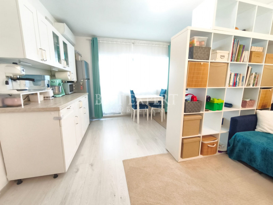 Studio luminos și bine compartimentat, situat la parterul unui bloc construit în anul 2020, într-un complex intim și liniștit, format din doar patru etaje.