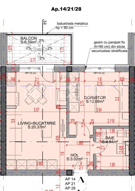 Suprafata utila - 40.02 mp utili +6.59 mp balcon, total 46.61 mp utili