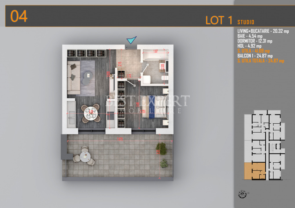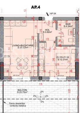 Suprafata utila - 41.09 mp utili +25.75 mp balcon, total 66.84 mp utili