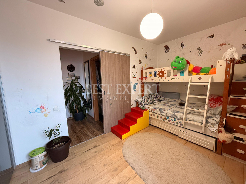 Se vinde semi-mobilat, beneficiind de: bucătărie realizată pe comandă, cu spații generoase de depozitare, dressinguri rămase în apartament