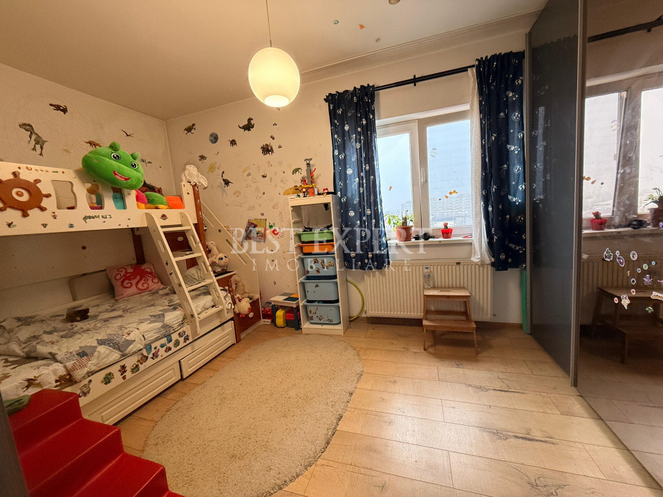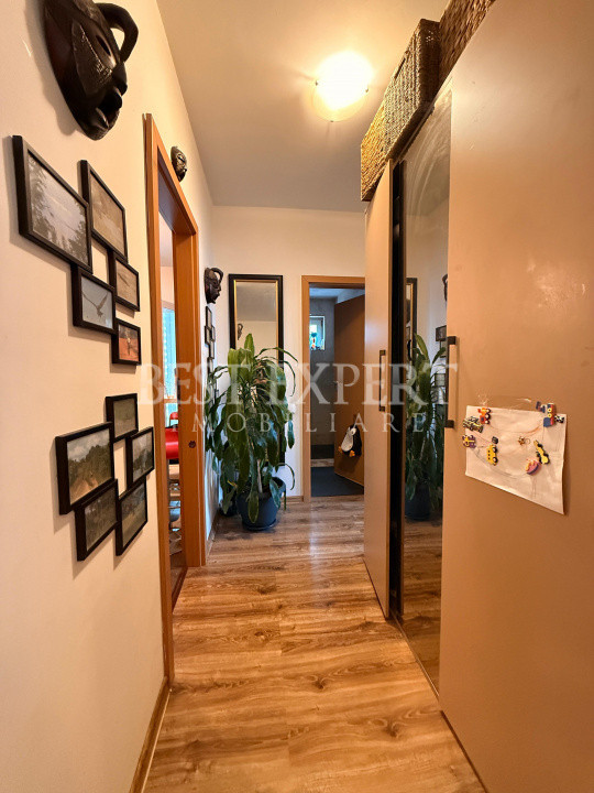Apartamentul are o compartimentare eficientă, oferind spații aerisite și multă lumină naturală, fiind poziționat la un etaj superior, cu priveliște deschisă.