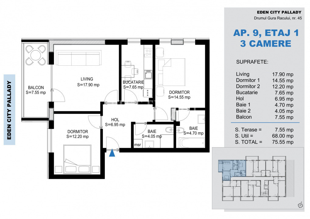 3 Camere Direct Dezvoltator -Finisaje Premium
