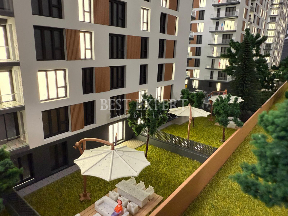 Zona exterioară este amenajată cu spații verzi generoase, grădini private, arbori plantați, alei de promenadă, locuri de relaxare și un spațiu de joacă sigur și modern pentru cei mici – totul creat pentru comunitate și armonie.