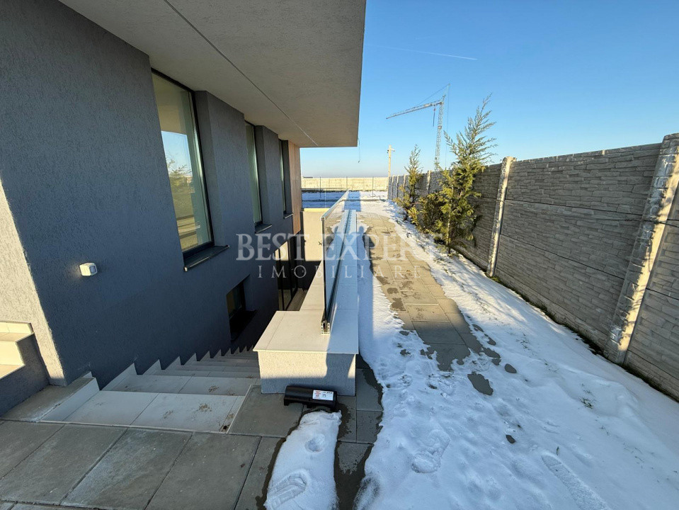 Casă modernă, construită pe un teren de 400 mp, cu o suprafață utilă de aproximativ 120 mp, parte dintr-un ansamblu rezidențial exclusivist de 25 de vile, ansamblu închis, cu acces securizat și monitorizare video.”